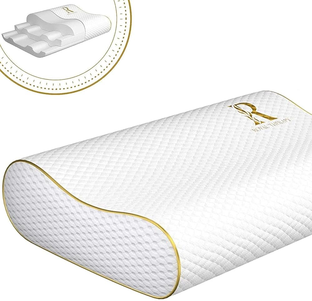 Royal Therapy Memory Foam Pillow, Queen Neck Pain Relief, Contour Cervical Pillow, for Neck and Shoulder Pain, Side, Back and Stomach Sleeper